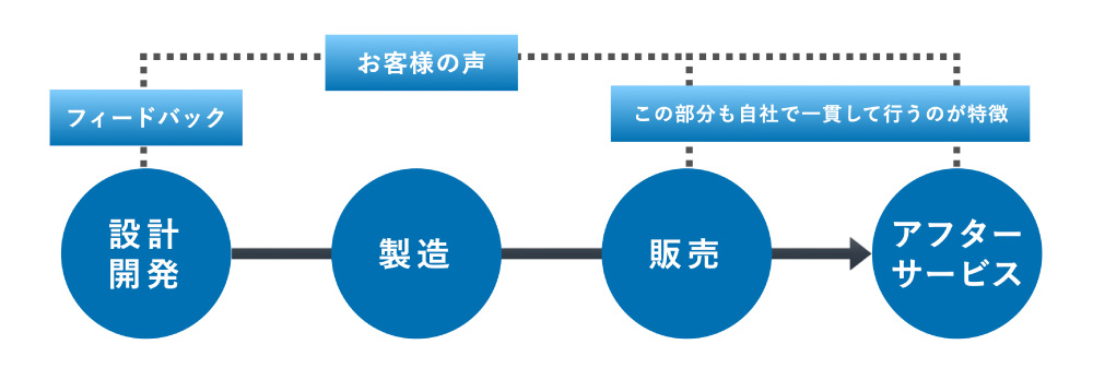 弊社は、設計開発・製造・販売・アフターサービスに至るまで、