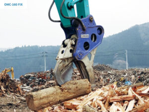 OMC wood cutter processes logging materials, root ball, stump, and any other wood products.