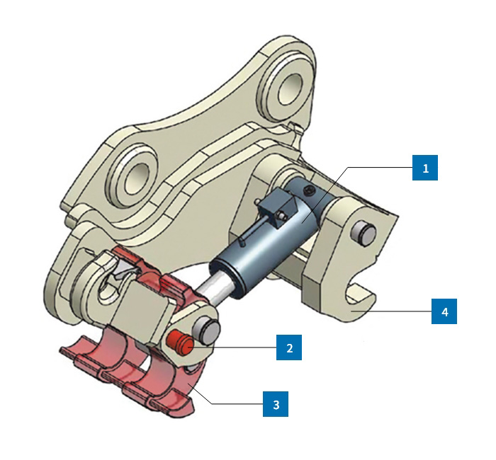 Actuated by hydraulic cylinder to firmly grip the pin.