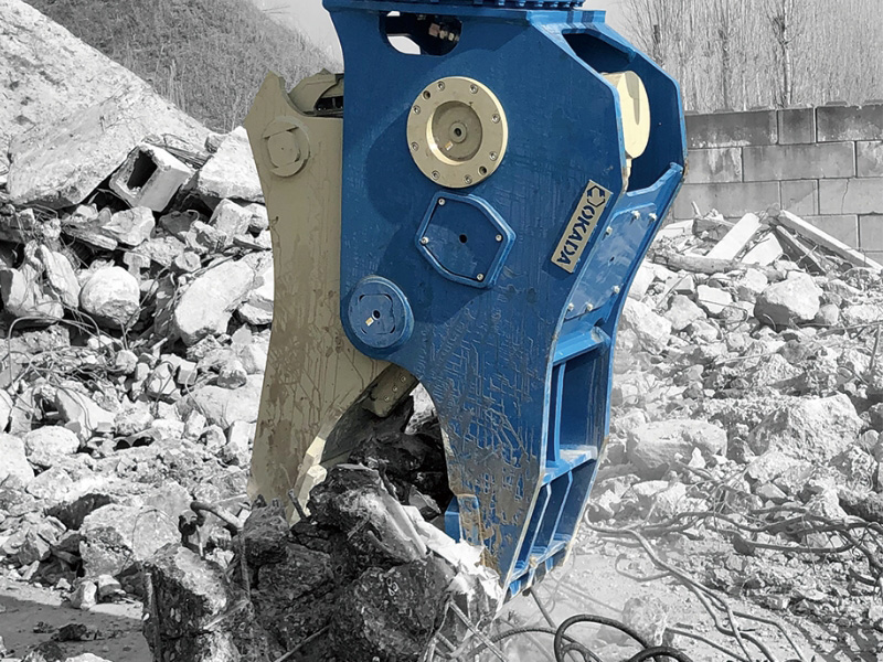 High-speed pulverizer to process concrete walls, bricks and concrete lumps into small pieces.
