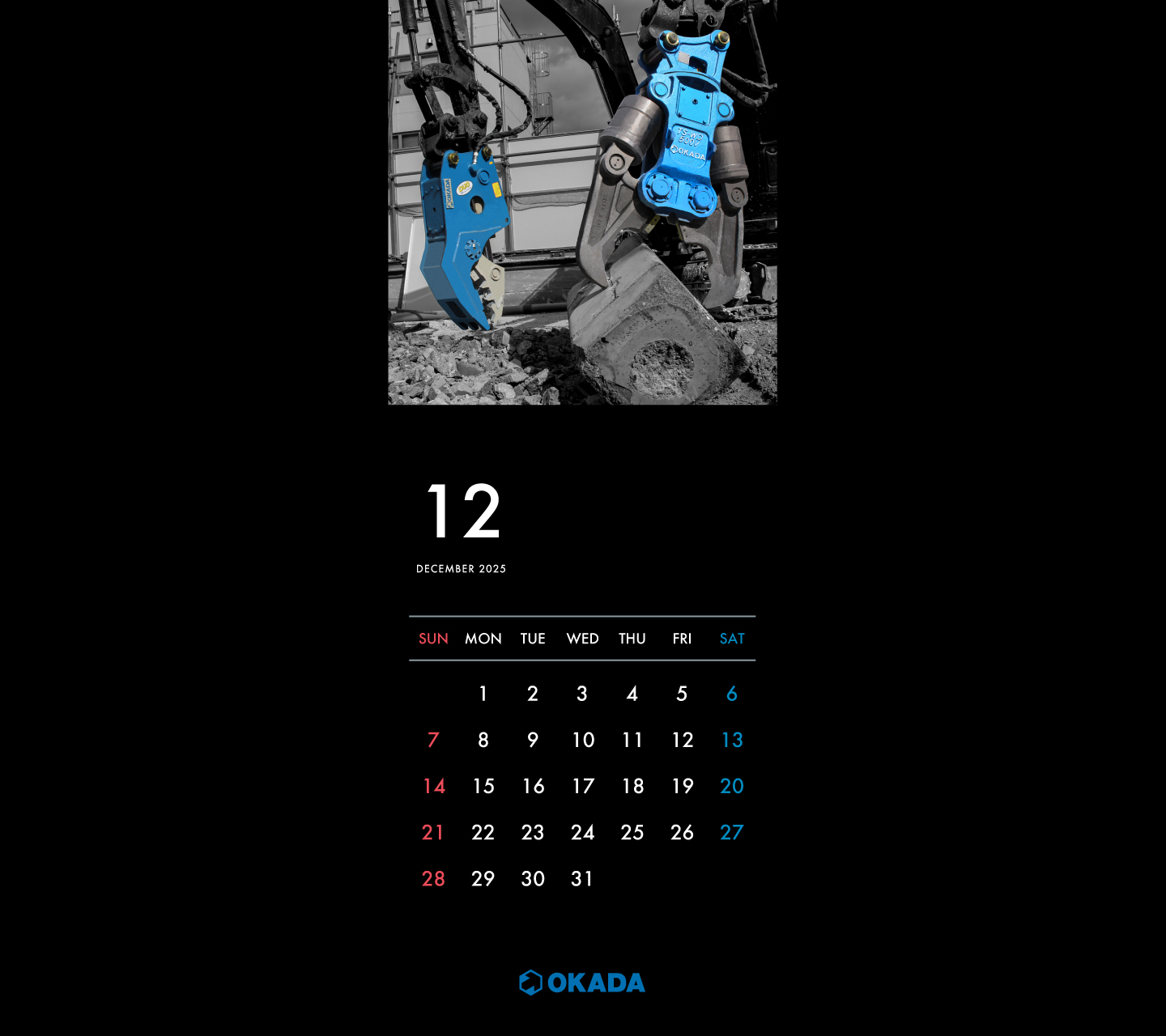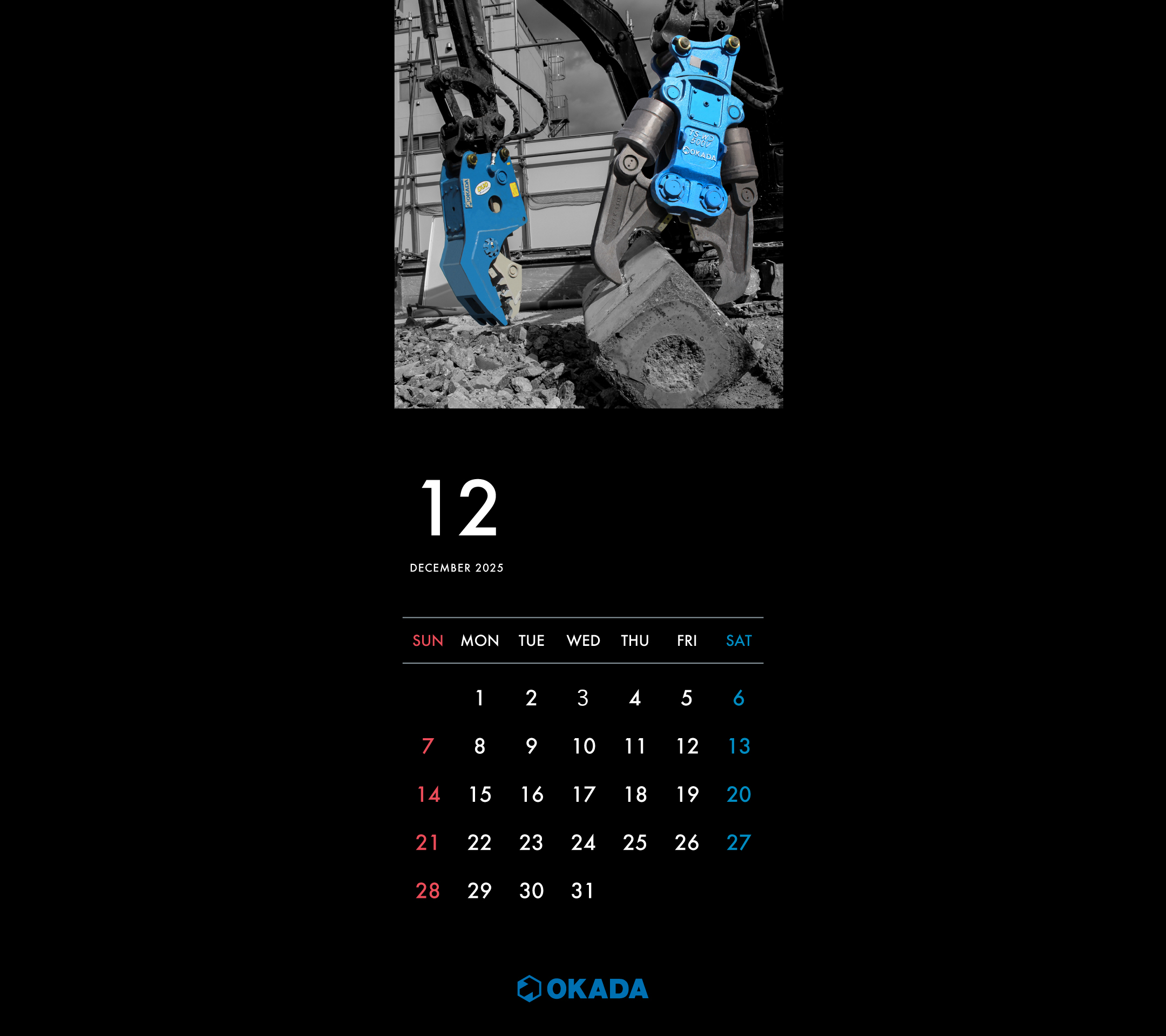 OKADAオリジナル 2025年カレンダー【12月分公開】