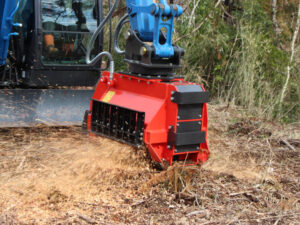 またレーキ機能で地表面をかいたり、林地を整理し植林場所を確保します。