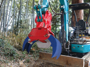オプションのレーキを使用で竹株処理や伐根作業も可能に!