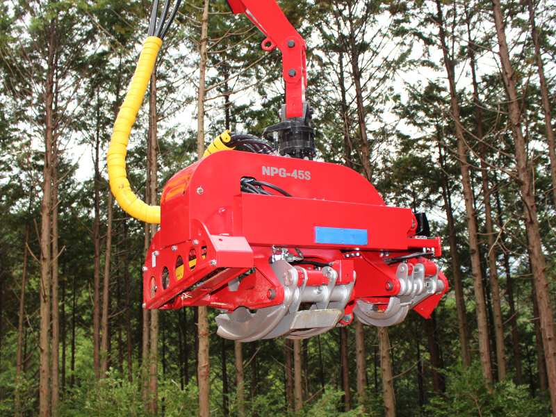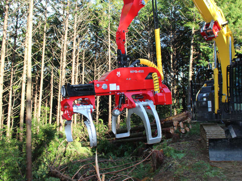集材作業現場で使用する木材グラップルは、集材作業現場以外(木材市場・チップ工場等)で使用しても「車両系木材伐出機械」に該当します。