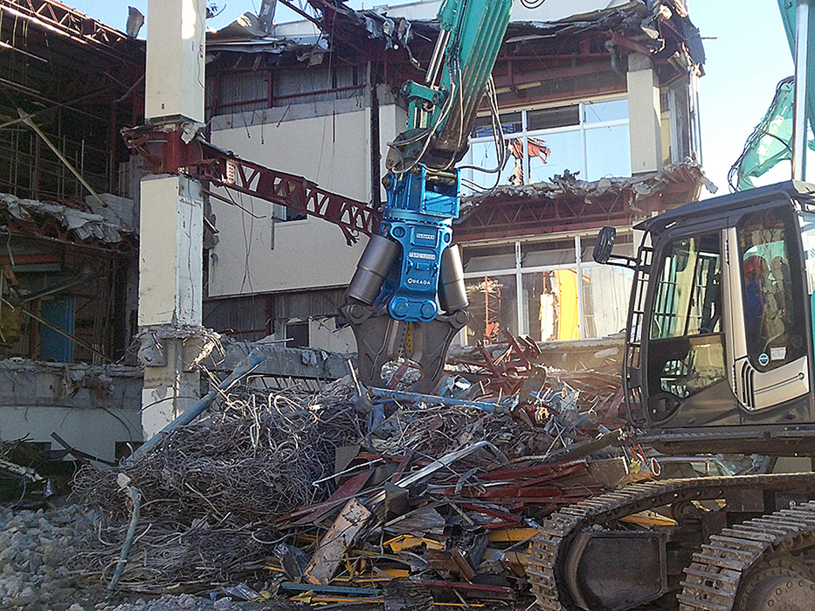 建物構造の多様化にあわせてTS-Wクラッシャーがさらに進化。これ1台でS構造、RC構造、SRC構造など、さまざまな解体現場に対応できます。