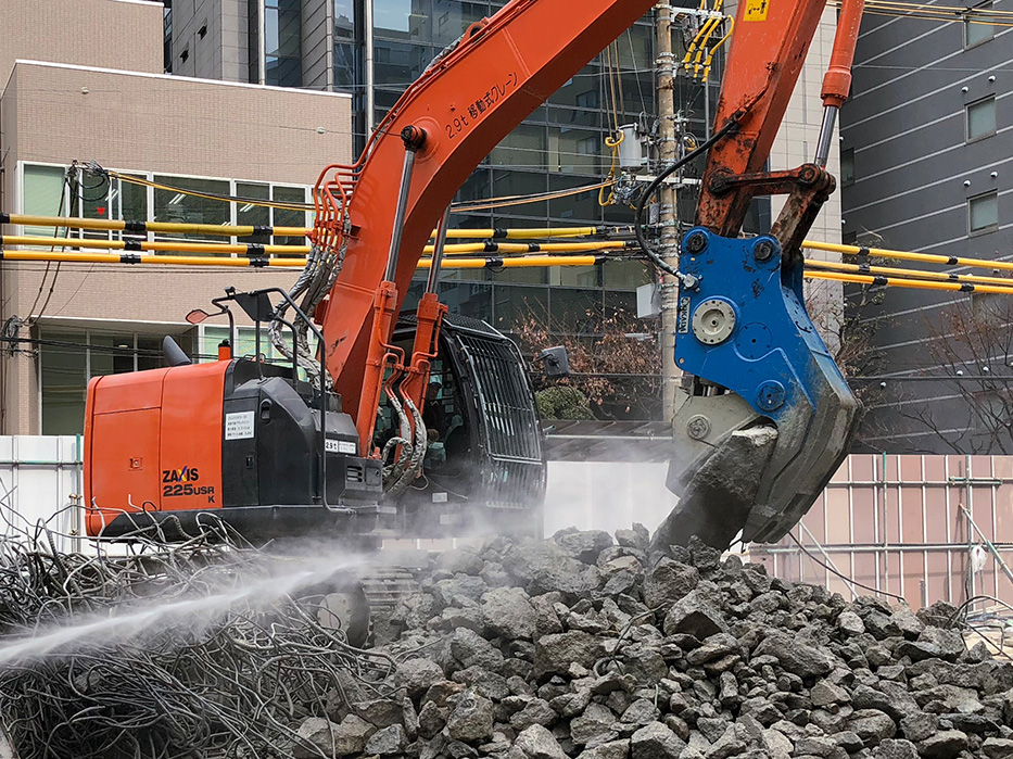 設計変更で開口幅全域を使った大きな破砕が可能となり、従来機に比べ大幅に破砕力がアップ。今まで時間がかかっていた対象物も、さくさく小割りすることができます。また、クラス最大級の開口幅で、大きなガラ処理もつかみ作業も容易に行えます。