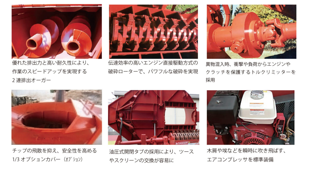エンジンに直接ベルト駆動方式を採用することでエンジンの性能を十分に発揮でき、一般的な同クラスのモデルに比べて破砕力や処理量が優れています。