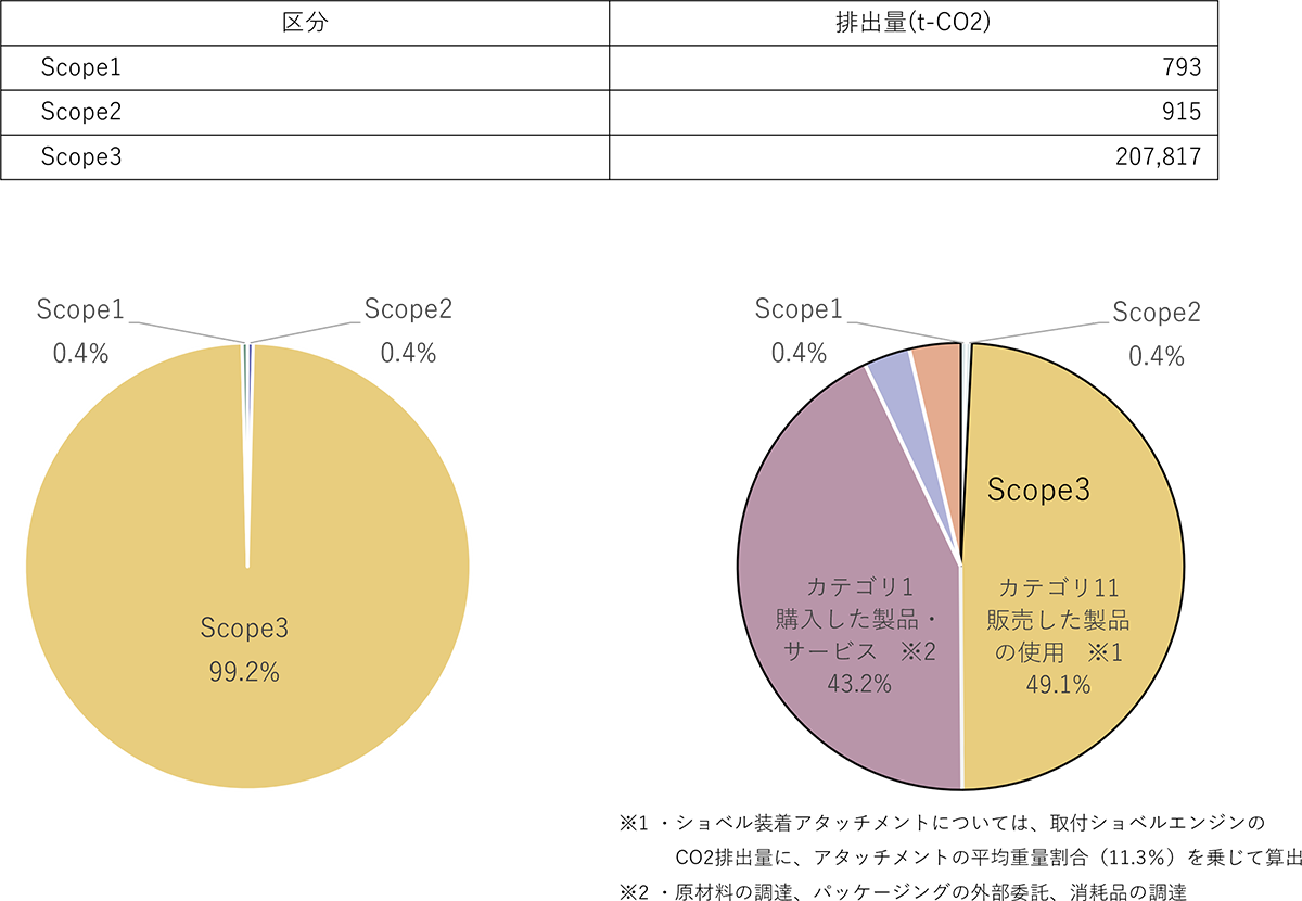 当社グループでは2018年度より事業活動におけるCO2排出量(以下、「 Scope1、2 」という。)、および2021年度より材料の調達や販売した製品の使用なども含んだサプライチェーンのCO2排出量(以下、「 Scope3 」という。)の把握に取り組み始めました。